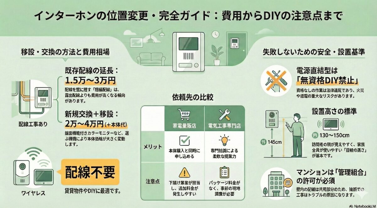 - 1. インターホンの位置を変えたい時の方法と費用は?