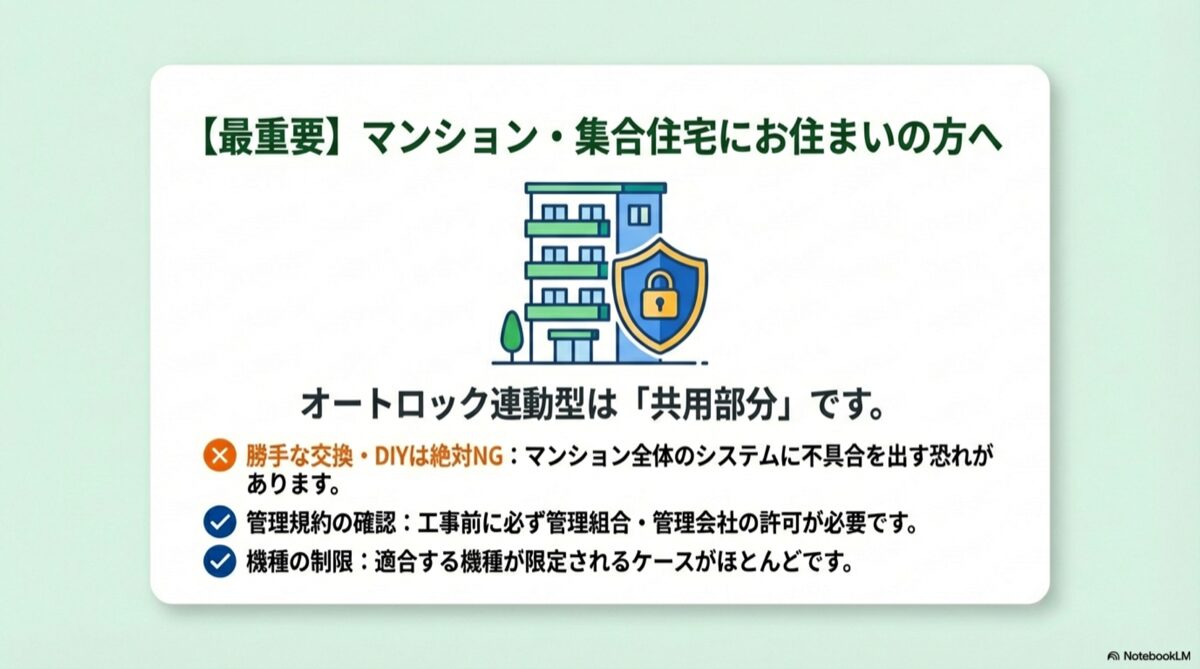 - 2.4.1. オートロック連動型は個人での機種選定やDIYは絶対にNG!