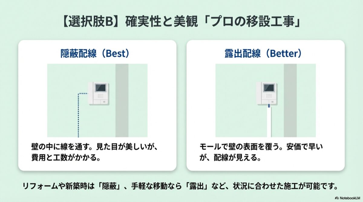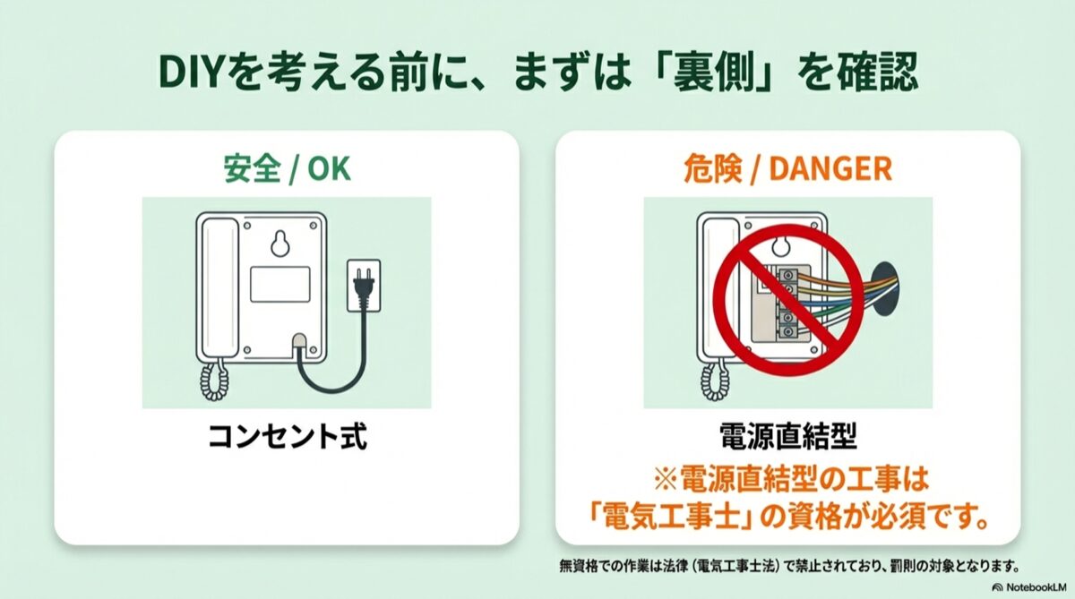 このタイプのインターホンの移設や交換は、これまで解説した中で最も専門性が高く、注意を要するケースです。