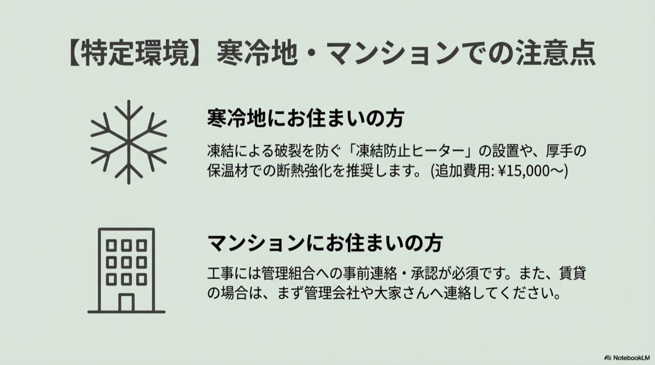 - 2.6. 凍結防止の断熱対策と寒冷地での費用