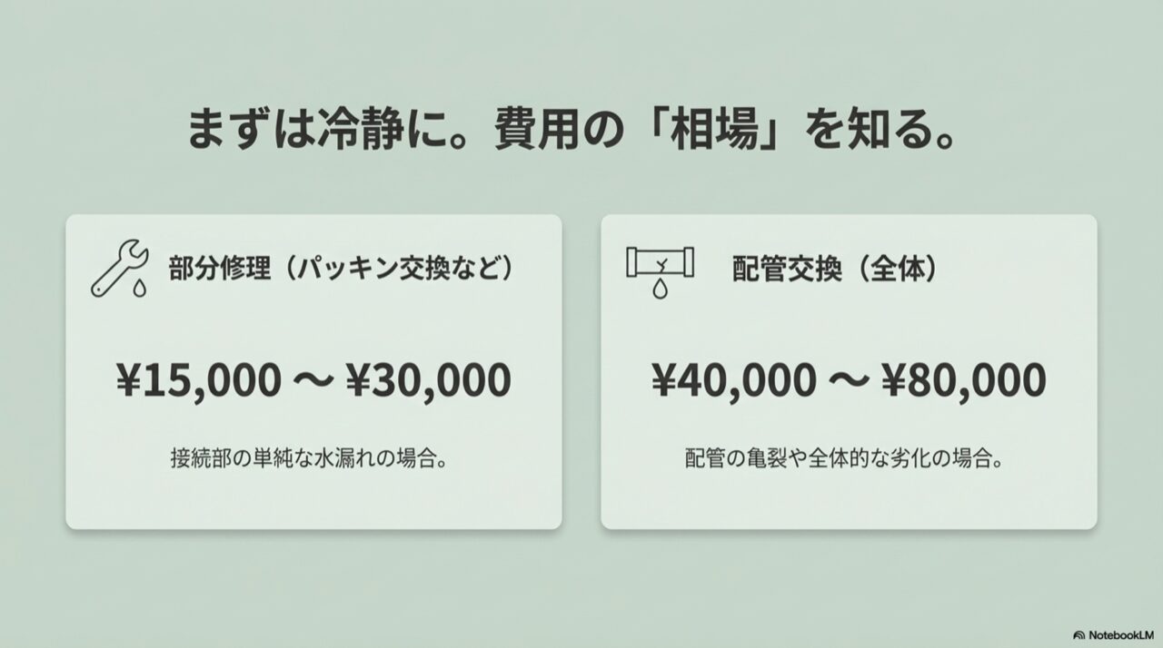 - 「部分修理」で済むのか「全交換」が必要かの判断基準が明確になります