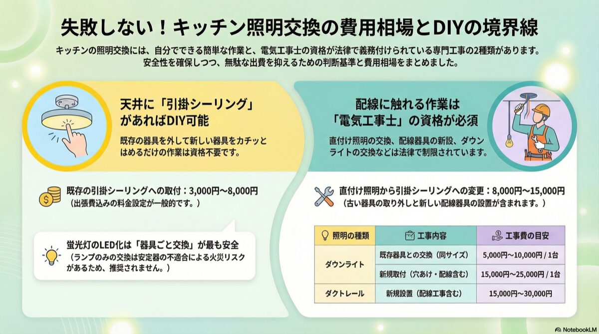 - 2. キッチンの天井照明交換費用と依頼先の選び方