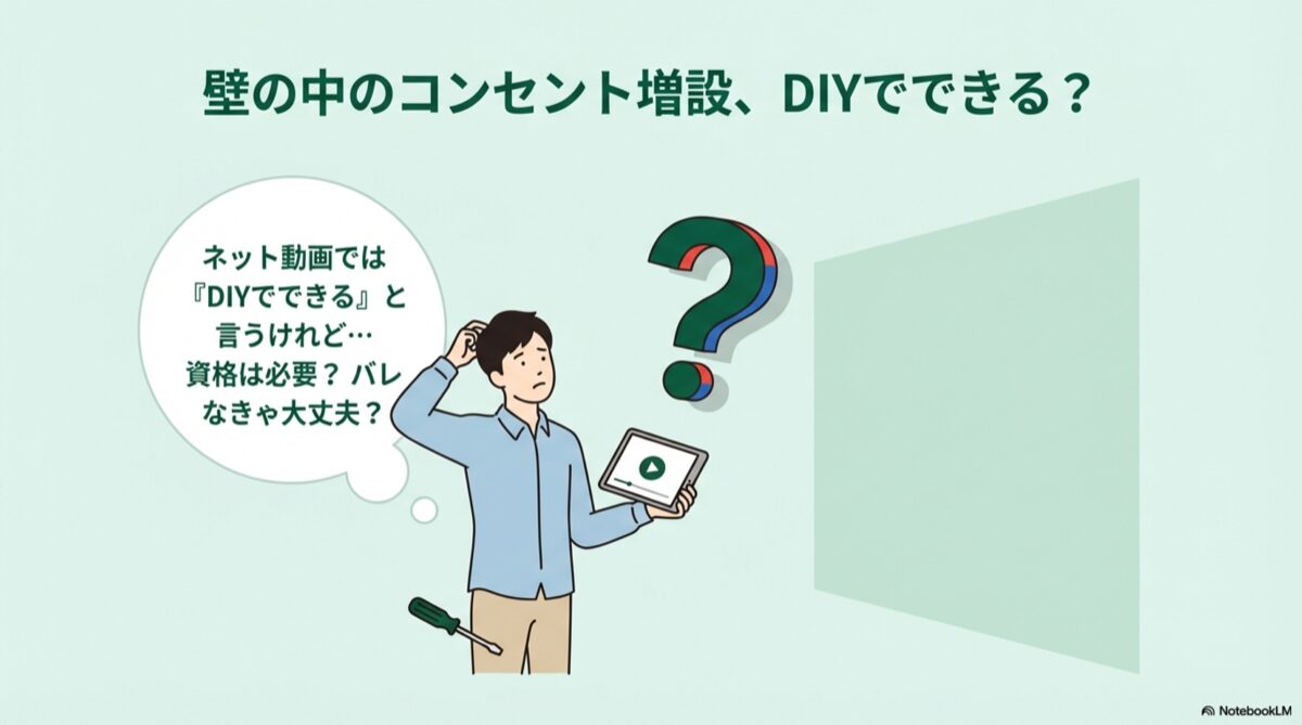 - 1.1. 壁内配線の分岐・延長やコンセント増設は、原則として無資格DIYではできません