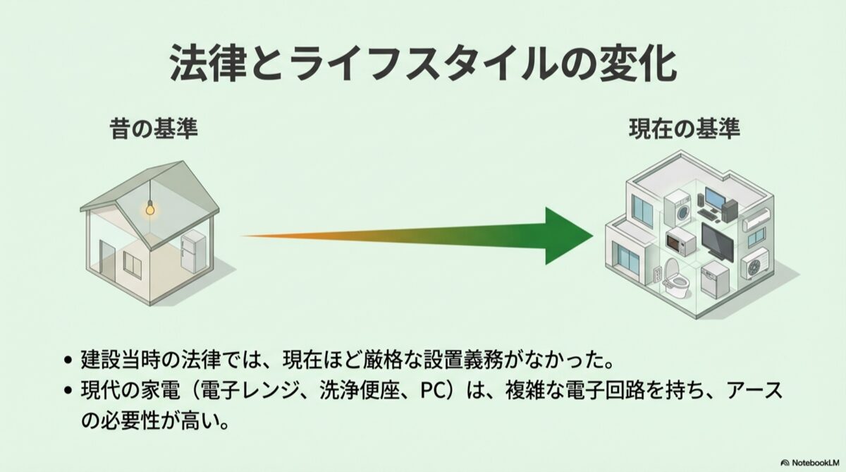 これらの機器は、内部に複雑な電子回路を持ち、少しの電気的な異常でも故障に繋がることがあります。だからこそ、現在の安全基準と思想に合わせて、住まいの電気設備も適切にアップデートしていくことが非常に重要になっている、というわけですね。