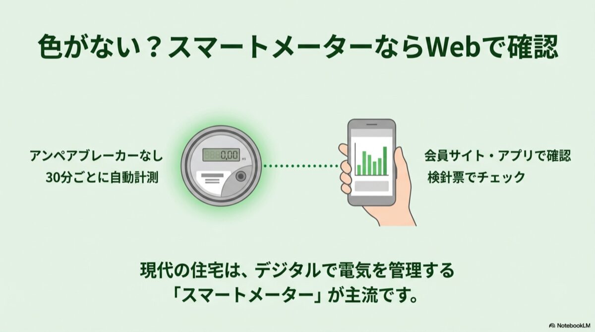 スマートメーターと契約アンペアの関係や、なぜアンペアブレーカーがいらないのかといった仕組みについては、以下の『アンペアブレーカーがない!スマートメーターの仕組み解説』の記事でさらに詳しく解説しています。