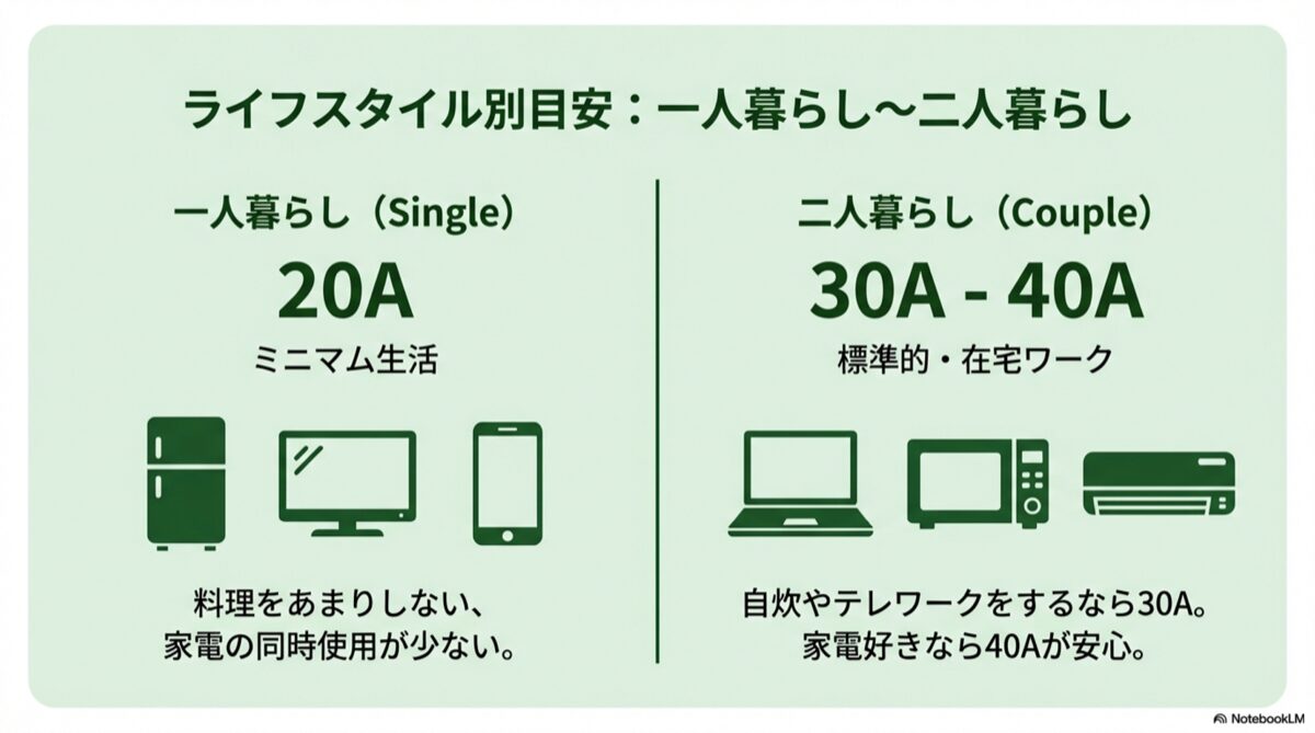 - 2.1. 一人暮らしに最適なアンペアの目安