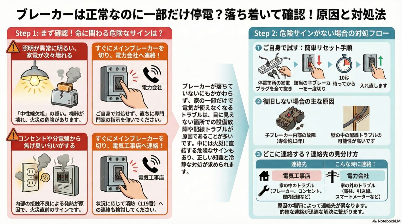 - 2. 家の一部だけ停電でブレーカーが落ちてない時の対処法