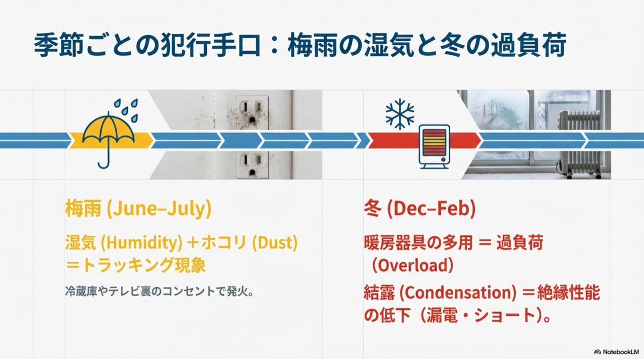 - 1.4. 冬や梅雨に多発する電気トラブルの原因