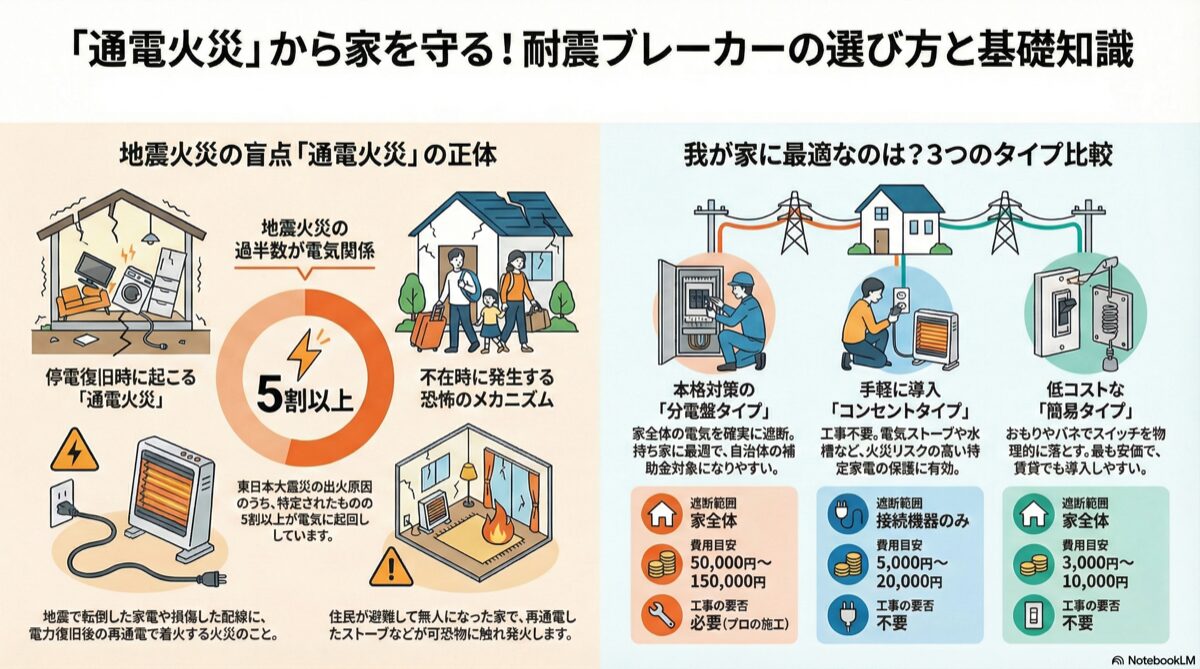 「通電火災」から家を守る!耐震ブレーカーの選び方と基礎知識
