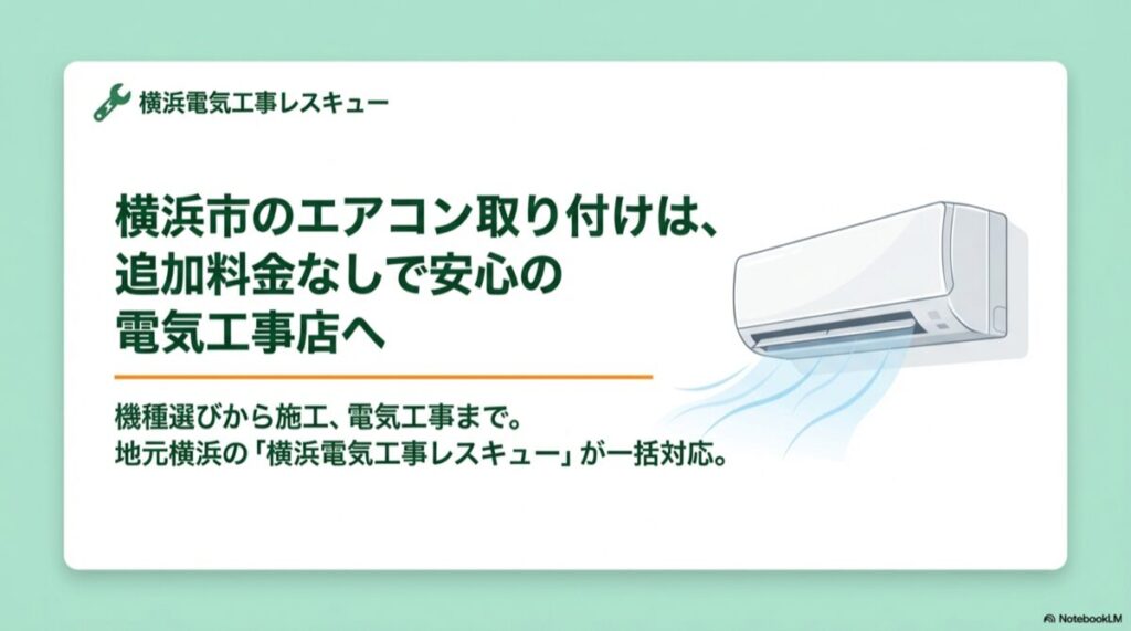 「エアコンを新しく取り付けたい」「買い替えのついでに工事だけ頼みたい」「引越しで移設が必要」——そのご依頼、横浜電気工事レスキューにお任せください。