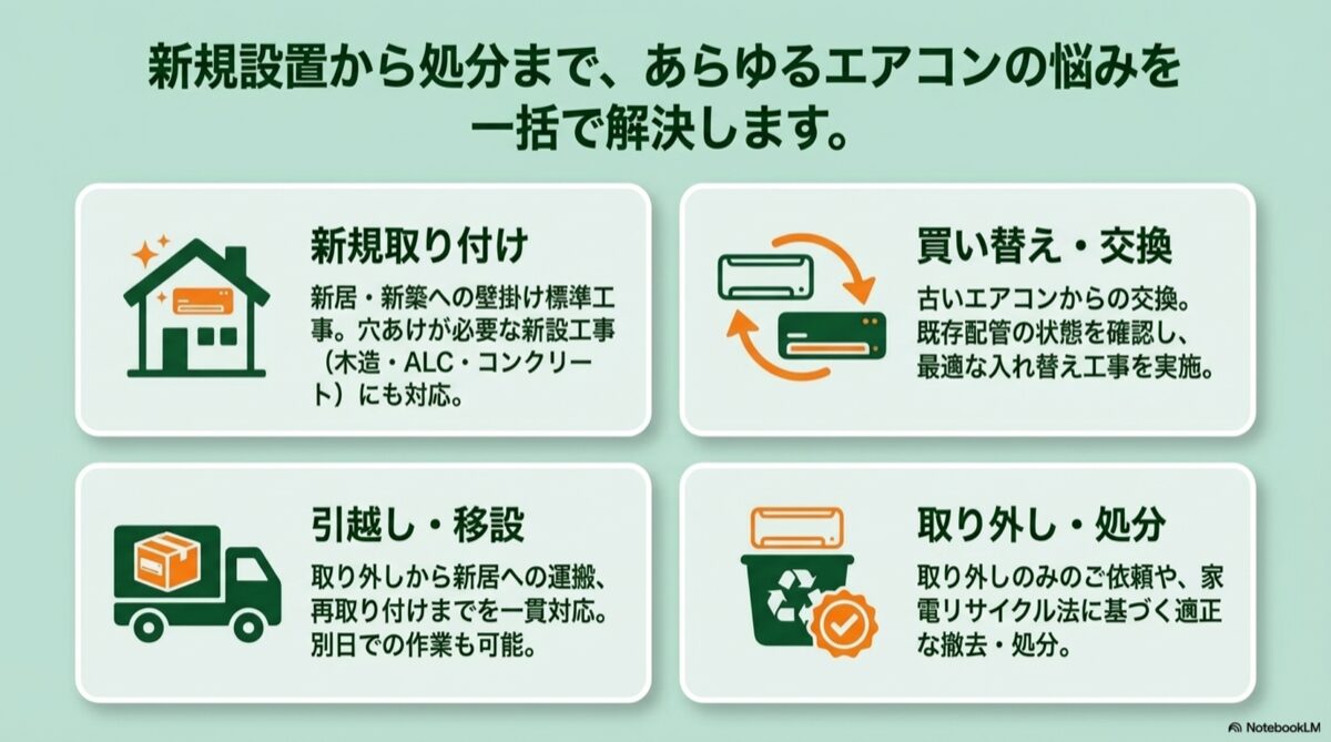 エアコン工事と合わせてご相談いただけるサービスです。